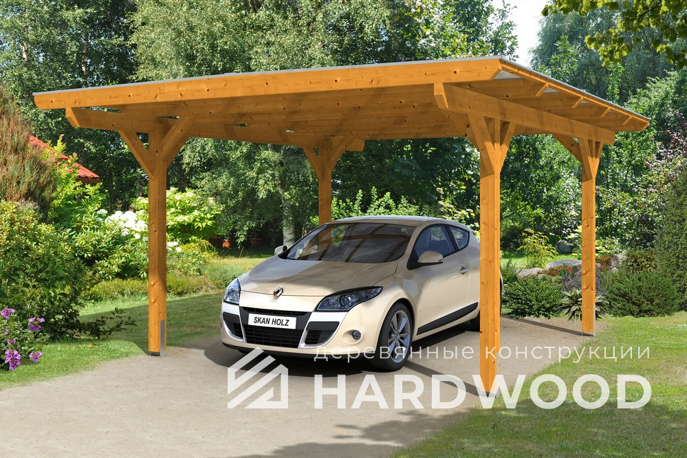 Навес для автомобиля из дерева с односкатной крышей №112