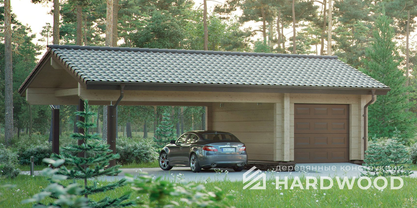 Деревянные навесы для автомобилей по акции